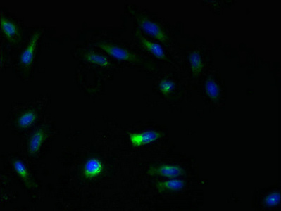 • Immunofluorescent analysis of Hela cells using CSB-PA728503LA01HU at dilution of 1:100 and Alexa Fluor 488-congugated AffiniPure Goat Anti-Rabbit IgG(H+L)