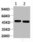 • Western blot analysis of 1) Mouse Brain, 2) Rat Brain, diluted at 1:2000.