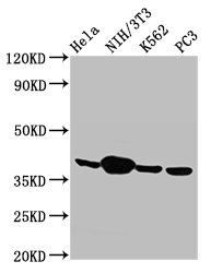 Positive WB detected in: Hela whole cell lysate, NIH/3T3 whole cell lysate, K562 whole cell lysate, PC-3 whole cell lysate