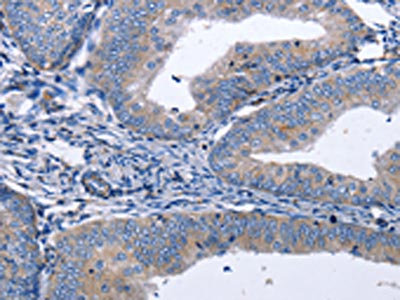 • The image on the left is immunohistochemistry of paraffin-embedded Human cervical cancer tissue using CSB-PA988388(BDNF Antibody) at dilution 1/40, on the right is treated with synthetic peptide. (Original magnification: ×200)