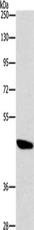 Gel: 8%SDS-PAGE, Lysate: 40 μg, Lane: A172 cells, Primary antibody: CSB-PA439979(BRS3 Antibody) at dilution 1/500, Secondary antibody: Goat anti rabbit IgG at 1/8000 dilution, Exposure time: 20 seconds