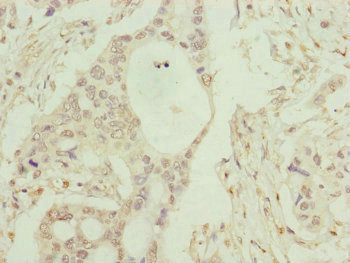 Immunohistochemistry of paraffin-embedded human pancreatic cancer using CSB-PA004195ESR2HU at dilution of 1:100