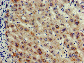 Immunohistochemistry of paraffin-embedded human liver tissue using CSB-PA747641LA01HU at dilution of 1:100