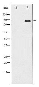 • Western blot analysis of Calcium Sensing Receptor expression in LOVO whole cell lysates,The lane on the left is treated with the antigen-specific peptide.