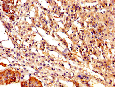 • IHC image of CSB-PA004561YA01HU diluted at 1:500 and staining in paraffin-embedded human adrenal gland tissue performed on a Leica BondTM system. After dewaxing and hydration, antigen retrieval was mediated by high pressure in a citrate buffer (pH 6.0). Section was blocked with 10% normal goat serum 30min at RT. Then primary antibody (1% BSA) was incubated at 4°C overnight. The primary is detected by a biotinylated secondary antibody and visualized using an HRP conjugated SP system.