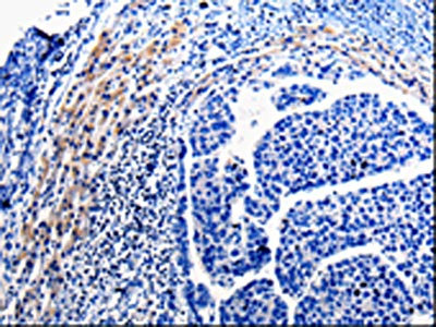 The image on the left is immunohistochemistry of paraffin-embedded Human liver cancer tissue using CSB-PA947265(CDC20 Antibody) at dilution 1/10, on the right is treated with fusion protein. (Original magnification: ×200)