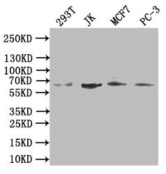 Positive WB detected in: 293T whole cell lysate, JK whole cell lysate, MCF7 whole cell lysate, PC-3 whole cell lysate