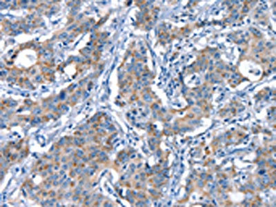 The image on the left is immunohistochemistry of paraffin-embedded Human gastric cancer tissue using CSB-PA102499(CDH5 Antibody) at dilution 1/30, on the right is treated with synthetic peptide. (Original magnification: ×200)