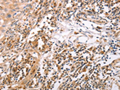 The image on the left is immunohistochemistry of paraffin-embedded Human cervical cancer tissue using CSB-PA715372(CIDEB Antibody) at dilution 1/50, on the right is treated with fusion protein. (Original magnification: ×200)