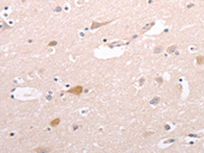 The image on the left is immunohistochemistry of paraffin-embedded Human brain tissue using CSB-PA715372(CIDEB Antibody) at dilution 1/50, on the right is treated with fusion protein. (Original magnification: ×200)