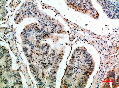Immunohistochemical analysis of paraffin-embedded human-colon-cancer, antibody was diluted at 1:200