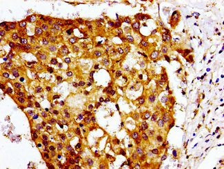 Immunohistochemistry of paraffin-embedded human breast cancer using CSB-PA005614LA01HU at dilution of 1:100