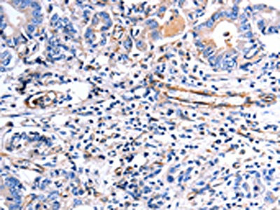 • The image on the left is immunohistochemistry of paraffin-embedded Human stomach cancer tissue using CSB-PA277061(COX11 Antibody) at dilution 1/30, on the right is treated with fusion protein. (Original magnification: ×200)