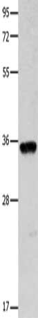 • Gel: 10%SDS-PAGE, Lysate: 40 μg, Lane: Mouse brain tissue, Primary antibody: CSB-PA277061(COX11 Antibody) at dilution 1/600, Secondary antibody: Goat anti rabbit IgG at 1/8000 dilution, Exposure time: 15 seconds