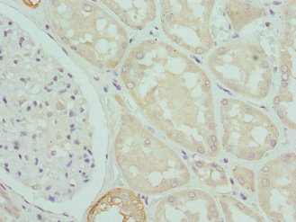 • Immunohistochemistry of paraffin-embedded human kidney tissue using CSB-PA005898ESR2HU at dilution of 1:100