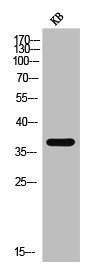 • Western Blot analysis of KB cells using CREB-1 Polyclonal Antibody