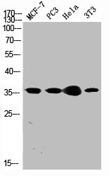 • Western Blot analysis of Hela NIH-3T3 MCF7 PC-3 cells using CREB-1 Polyclonal Antibody