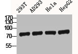 • Western Blot analysis of 293T AD293 HELA HepG2 cells using Catenin-β Polyclonal Antibody