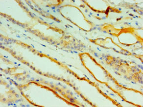 Immunohistochemistry of paraffin-embedded human kidney tissue using CSB-PA006194ESR2HU at dilution of 1:100