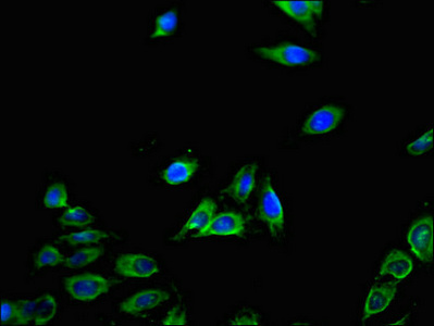 • Immunofluorescent analysis of Hela cells using CSB-PA06119A0Rb at dilution of 1:100 and Alexa Fluor 488-congugated AffiniPure Goat Anti-Rabbit IgG(H+L)