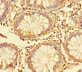Immunohistochemistry of paraffin-embedded human colon cancer using CSB-PA006589LA01HU at dilution of 1:100