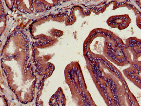 Immunohistochemistry of paraffin-embedded human prostate tissue using CSB-PA06229A0Rb at dilution of 1:100