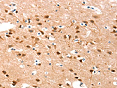 • The image on the left is immunohistochemistry of paraffin-embedded Human brain tissue using CSB-PA046723(DSC1 Antibody) at dilution 1/40, on the right is treated with synthetic peptide. (Original magnification: ×200)