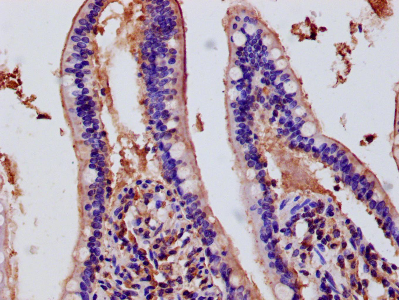 Immunohistochemistry of paraffin-embedded human small intestine tissue using CSB-PA007229ESR1HU at dilution of 1:50
