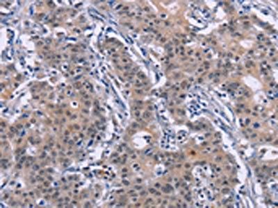 • The image on the left is immunohistochemistry of paraffin-embedded Human gastric cancer tissue using CSB-PA040869(DVL2 Antibody) at dilution 1/20, on the right is treated with synthetic peptide. (Original magnification: ×200)