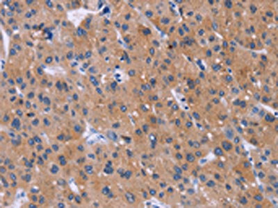 • The image on the left is immunohistochemistry of paraffin-embedded Human liver cancer tissue using CSB-PA040869(DVL2 Antibody) at dilution 1/20, on the right is treated with synthetic peptide. (Original magnification: ×200)