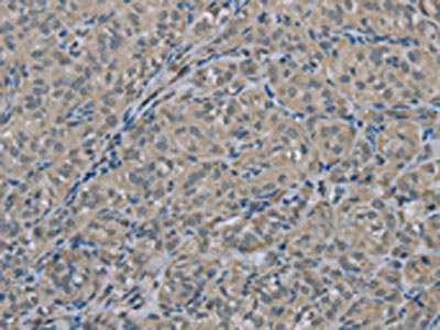 The image on the left is immunohistochemistry of paraffin-embedded Human thyroid cancer tissue using CSB-PA198612(EDN1 Antibody) at dilution 1/30, on the right is treated with fusion protein. (Original magnification: ×200)
