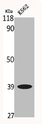 • Western Blot analysis of K562 cells using eIF2α Polyclonal Antibody