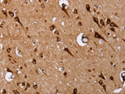 • The image on the left is immunohistochemistry of paraffin-embedded Human brain tissue using CSB-PA283664(EPDR1 Antibody) at dilution 1/20, on the right is treated with fusion protein. (Original magnification: ×200)