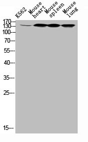 • Western Blot analysis of k562 mouse-heart mouse-spleen mouse-lung cells using ErbB-3 Polyclonal Antibody