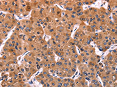 The image on the left is immunohistochemistry of paraffin-embedded Human liver cancer tissue using CSB-PA992687(ERP29 Antibody) at dilution 1/40, on the right is treated with synthetic peptide. (Original magnification: ×200)