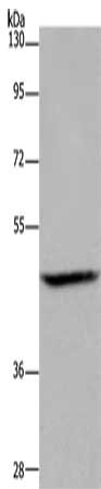 • Gel: 8%SDS-PAGE, Lysate: 40 μg, Lane: Mouse brain tissue, Primary antibody: CSB-PA908387(ETS2 Antibody) at dilution 1/500, Secondary antibody: Goat anti rabbit IgG at 1/8000 dilution, Exposure time: 1 minute