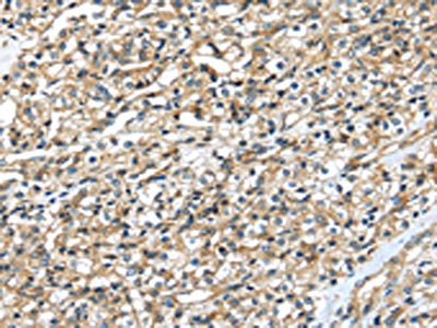 • The image on the left is immunohistochemistry of paraffin-embedded Human prostate cancer tissue using CSB-PA877573(F2 Antibody) at dilution 1/35, on the right is treated with synthetic peptide. (Original magnification: ×200)