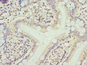 • Immunohistochemistry of paraffin-embedded human small intestine tissue using CSB-PA008624ESR1HU at dilution of 1:100