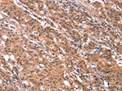 • The image on the left is immunohistochemistry of paraffin-embedded Human gastic cancer tissue using CSB-PA077924(FGF22 Antibody) at dilution 1/20, on the right is treated with synthetic peptide. (Original magnification: ×200)