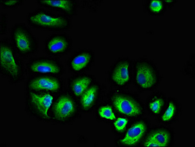 Immunofluorescent analysis of A549 cells using CSB-PA008655LA01HU at dilution of 1:100 and Alexa Fluor 488-congugated AffiniPure Goat Anti-Rabbit IgG(H+L)