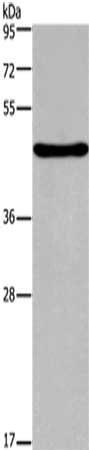 • Gel: 8%SDS-PAGE,Lysate: 40 μg,,Primary antibody: CSB-PA167678(FOXA2 Antibody) at dilution 1/500 dilution,Secondary antibody: Goat anti rabbit IgG at 1/8000 dilution,Exposure time: 3 minutes