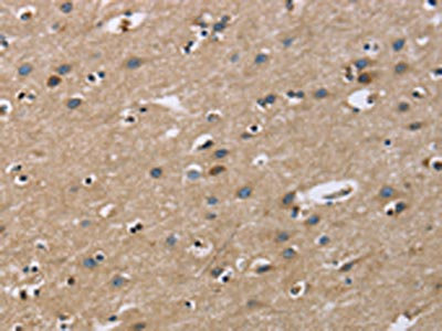 The image on the left is immunohistochemistry of paraffin-embedded Human brain tissue using CSB-PA078640(GAB1 Antibody) at dilution 1/40, on the right is treated with fusion protein. (Original magnification: ×200)
