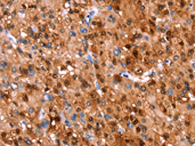 • The image on the left is immunohistochemistry of paraffin-embedded Human liver cancer tissue using CSB-PA576969(GH1 Antibody) at dilution 1/40, on the right is treated with synthetic peptide. (Original magnification: ×200)