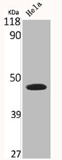 • Western Blot analysis of HELA cells using Connexin 43 Polyclonal Antibody