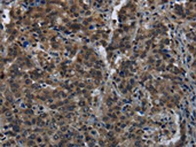 The image on the left is immunohistochemistry of paraffin-embedded Human liver cancer tissue using CSB-PA209664(GK Antibody) at dilution 1/60, on the right is treated with fusion protein. (Original magnification: ×200)