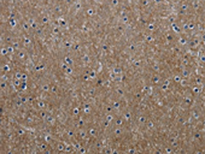 • The image on the left is immunohistochemistry of paraffin-embedded Human brain tissue using CSB-PA234599(GNG2 Antibody) at dilution 1/60, on the right is treated with fusion protein. (Original magnification: ×200)