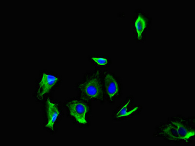 • Immunofluorescent analysis of Hela cells using CSB-PA757664LA01HU at dilution of 1:100 and Alexa Fluor 488-congugated AffiniPure Goat Anti-Rabbit IgG(H+L)