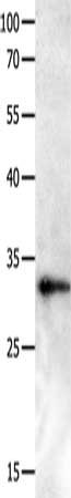 • Gel: 10%SDS-PAGE, Lysate: 40 μg, Lane: Human ovarian cancer tissue, Primary antibody: CSB-PA209020(GPR3 Antibody) at dilution 1/400, Secondary antibody: Goat anti rabbit IgG at 1/8000 dilution, Exposure time: 2 minutes