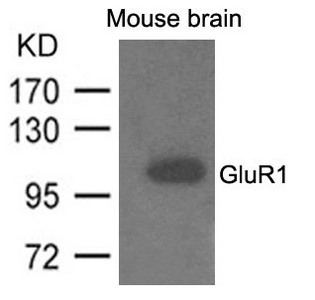 • Western blot analysis of extracts from mouse brain and using GluR1 Antibody.