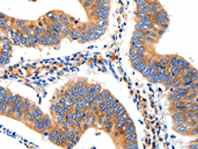 • The image on the left is immunohistochemistry of paraffin-embedded Human colon cancer tissue using CSB-PA559950(GRM1 Antibody) at dilution 1/10, on the right is treated with synthetic peptide. (Original magnification: ×200)